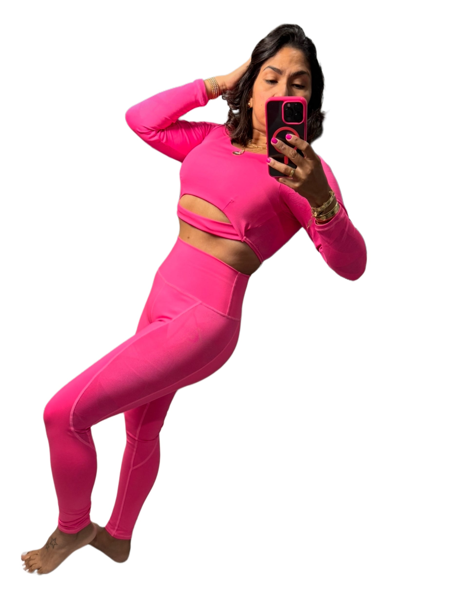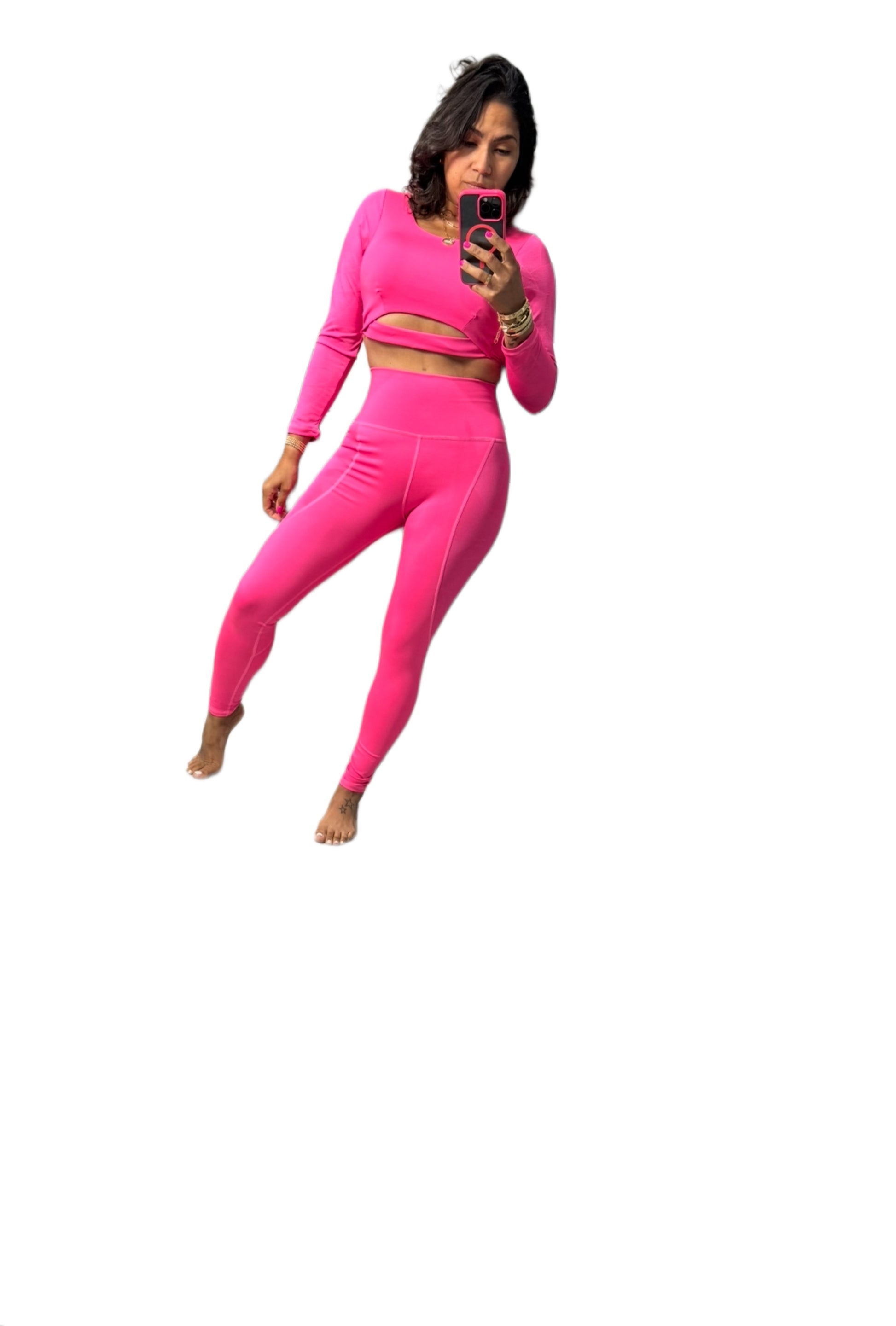 Conjunto de legging y top sin manga. Es en tela rib mate que se adapta perfectamente a tu figura brindándote confort y comodidad. El legging es de talle alto, con costura vertical en cada pierna que ayuda a alargarla visualmente. Es versátil, ya que puede usarse para hacer deporte o como prenda de vestir casual.