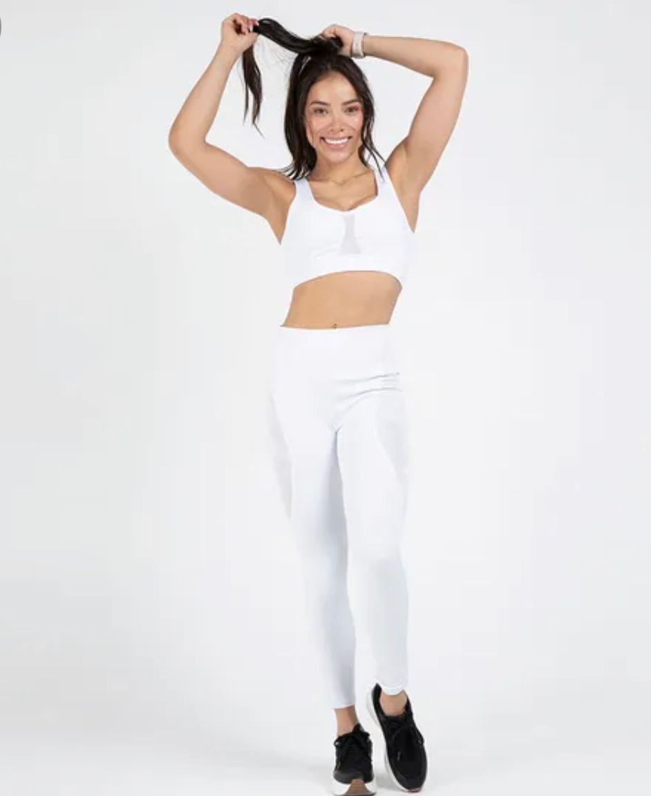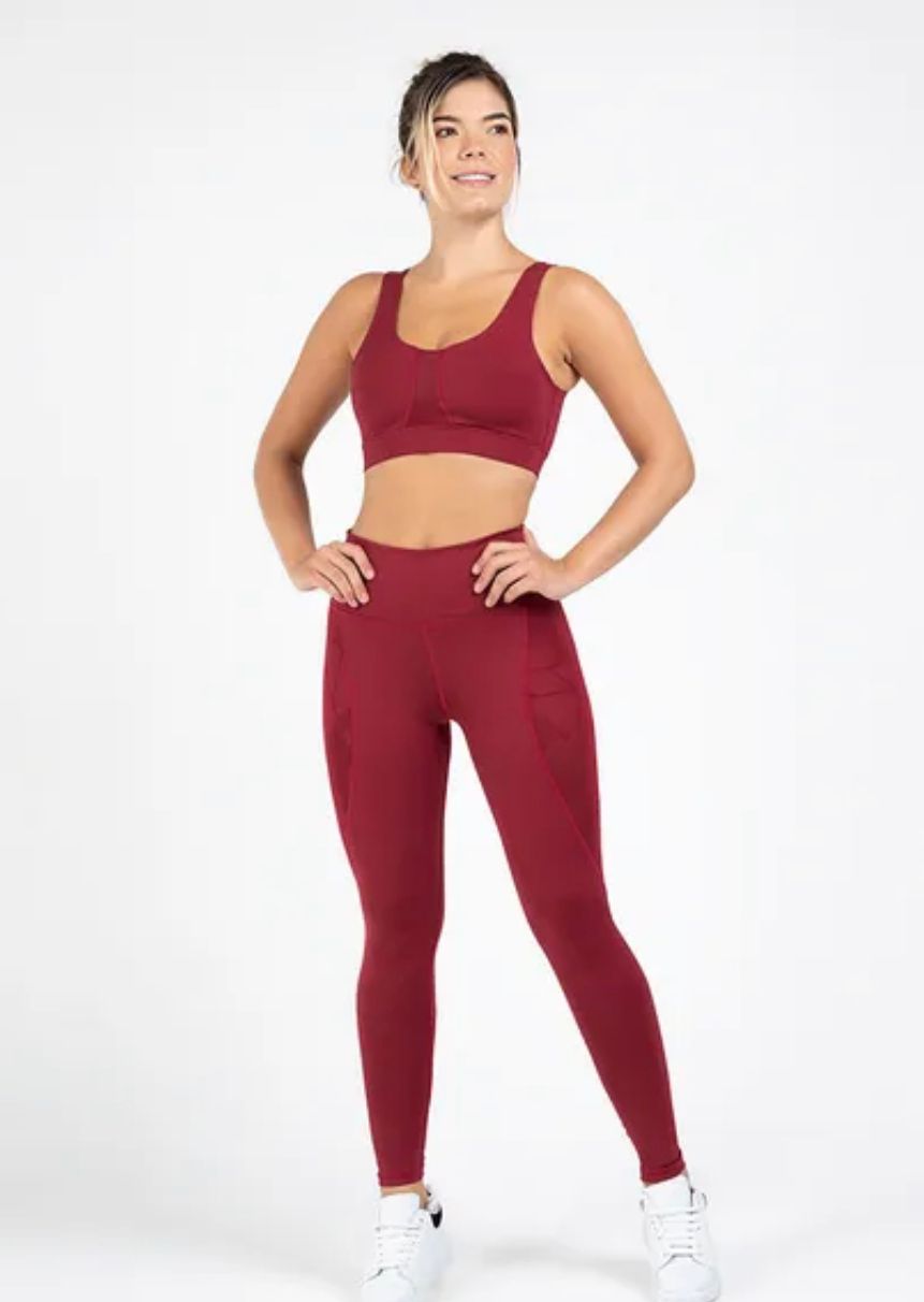 Conjunto de legging y top combina tela lisa con tela en malla en un diseño unico, que destacará lo mejor de tus piernas. Se ajusta tu figura brindándote confort y comodidad. Es de tiro alto para mayor compresión en zona abdominal.